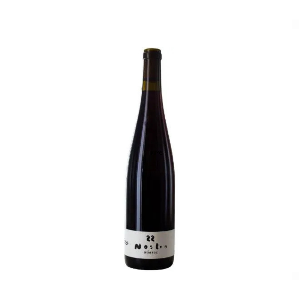 En bodega, Nostos 2022 sigue un enfoque natural de mínima intervención: fermentación espontánea con levaduras autóctonas y 20 días de maceración sobre pieles en depósitos de acero inoxidable. Esta fase permite extraer suavemente color, estructura y aromas, aportando profundidad sin peso. El vino posteriormente se cría 8 meses en acero inoxidable, conservando su frescura y carácter aromático mediterráneo. Sin filtrar, con solo 20 mg/L de dióxido de azufre añadido en el embotellado, Nostos ejemplifica la elegancia natural y la artesanía enológica.